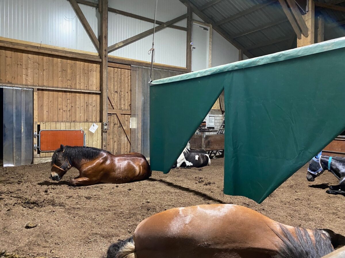 Der Liegebereich ist in 3 Liegeflächen aufgeteilt und mit Biowaldboden eingestreut. So haben die Pferde sehr viel Liegeflächen und verschiedene Rückzugsmöglichkeiten zur Verfügung.