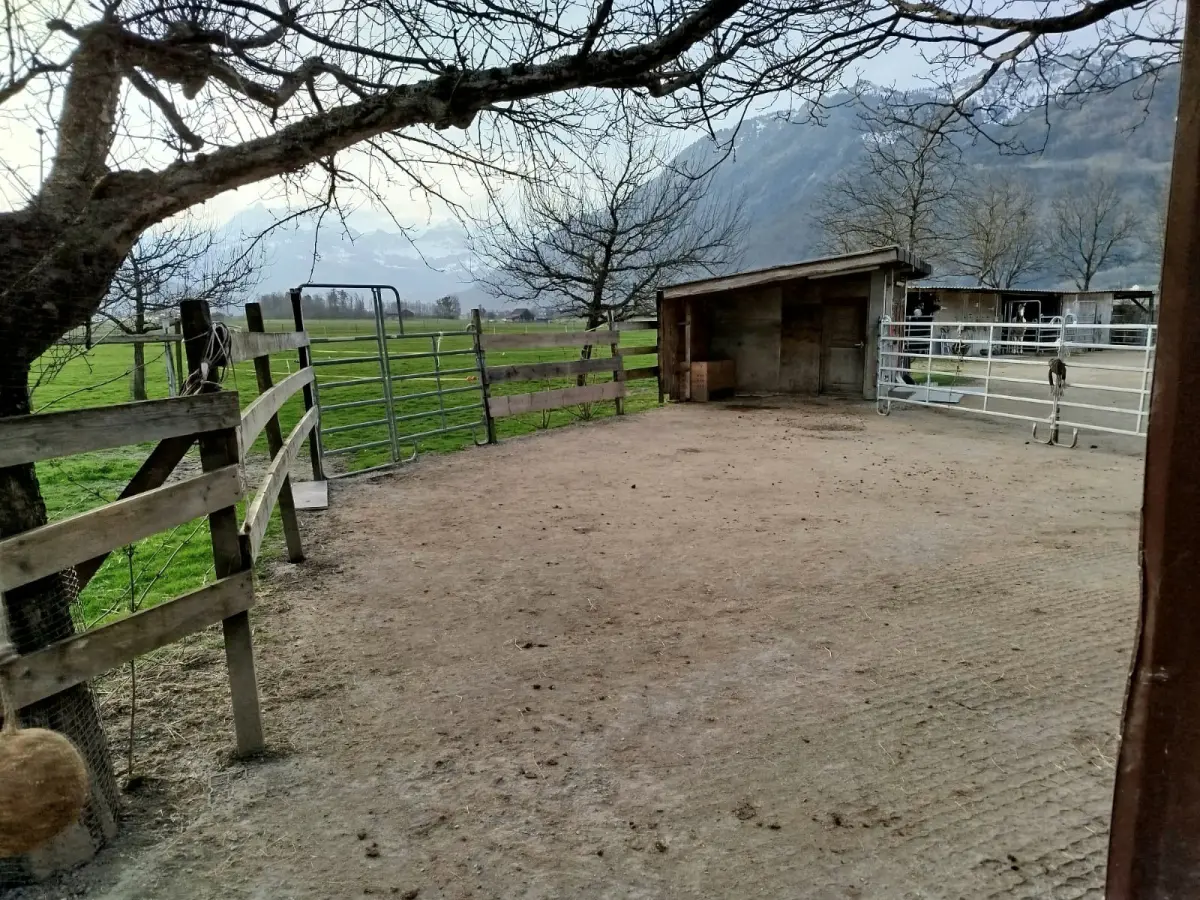 Offenstall in 8717 Benken an Selbstversorger zu vermieten. Der Stall hat Platz für 4 Pferde und bietet direkten Weidezugang zu grossen Weiden. In unmittelbarer Nähe befindet sich ein gepflegter Sandplatz (20 x 40m) zur Mitbenutzung.