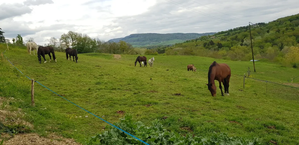 Paddock Paradise ausschliesslich für Barhufpferde. Rundumversorgung, Gruppenhaltung 15 Pferde, genügend Unterstände, 8ha Weide, 650m stabilisierter trail (ca. 3000m2), ganztägige Aufsicht. Lage nähe Genf, 15min ab Grenze Bardonnex.