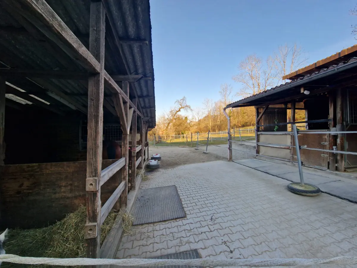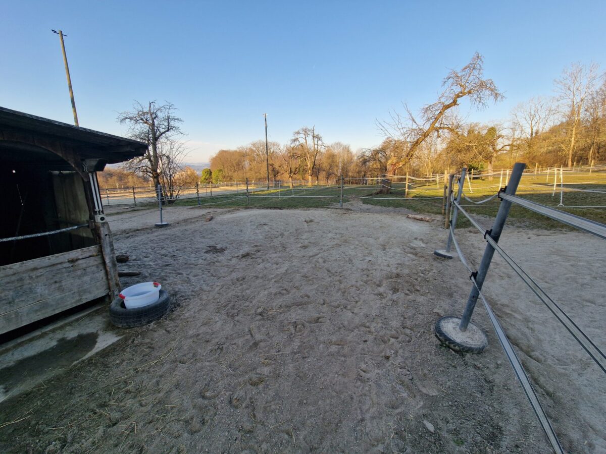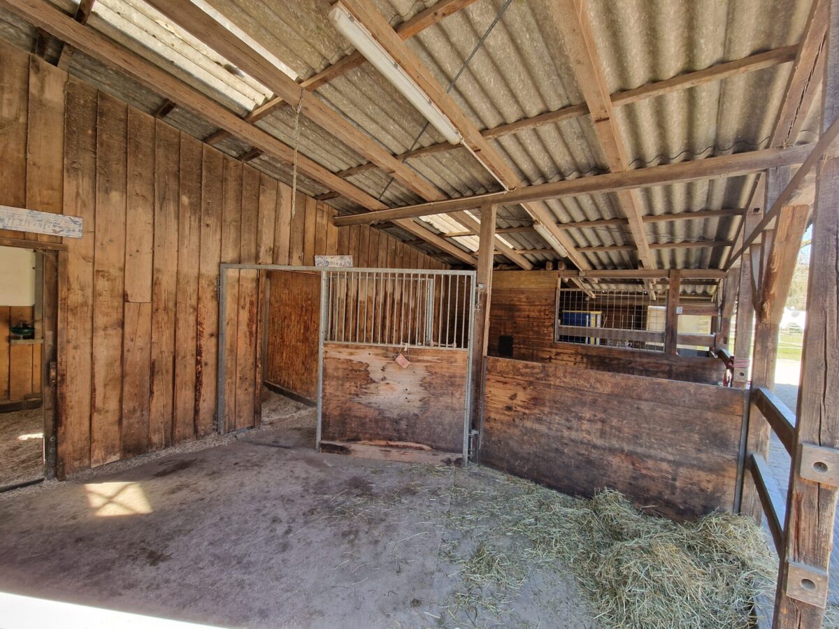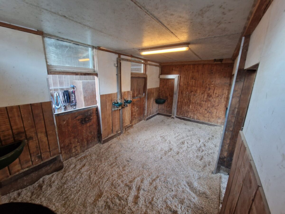 ✅ Stallbereich: Liegefläche, überdachter Auslauf, angrenzend ein befestigter Auslauf, direkter Weidezugang. ➡️ Boxen und überdachter Auslauf abtrennbar.