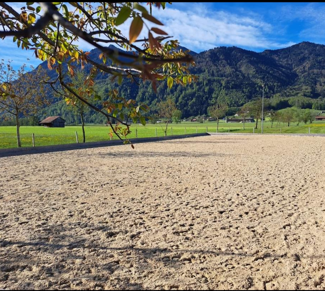 Ein gepflegter Sandplatz (ca. 20 x 40m) sowie ein weitläufiges Ausreitgebiet ermöglicht das Glück auf dem Rücken der Pferde.